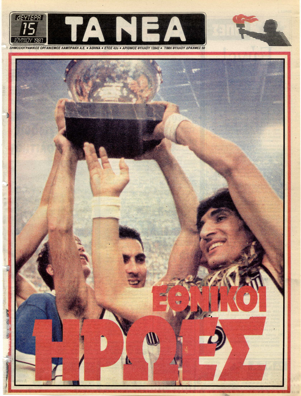 «ΤΑ ΝΕΑ», 15.6.1987, Ιστορικό Αρχείο «ΤΟ ΒΗΜΑ» & «ΤΑ ΝΕΑ»