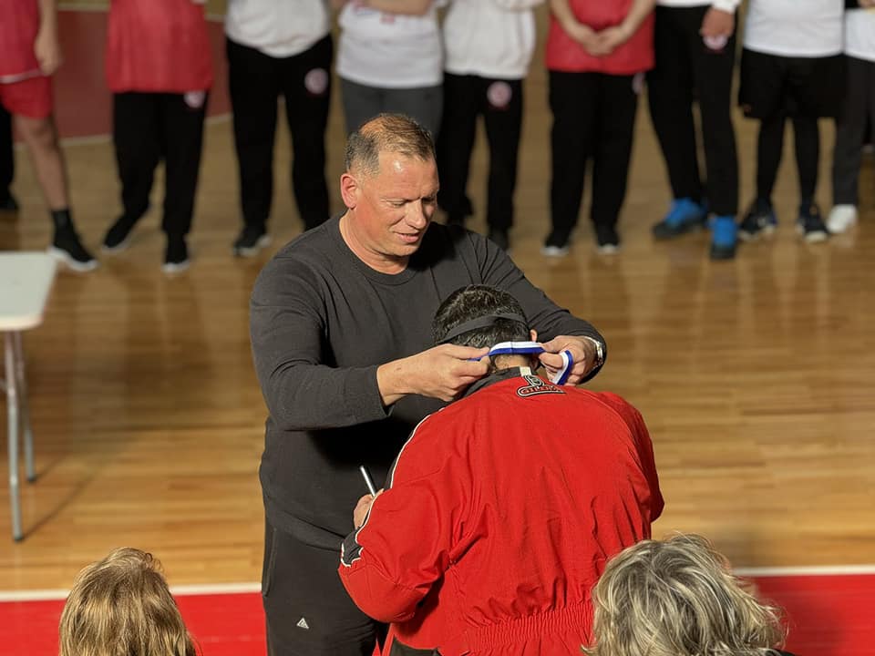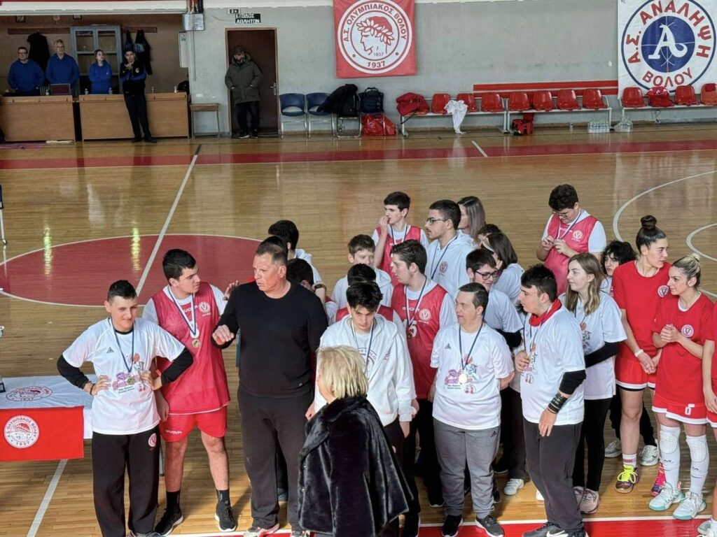 Ενεργά παρόντες, οι πραγματικοί μαχητές της ζωής, τα παιδιά της Red Special Team του Ολυμπιακού Βόλου, της ομάδας που ίδρυσε ο Νίκος Μπουντούρης, τα οποία τίμησε η ΕΣΚΑΘ με εκπροσώπους της τον Γενικό Γραμματέα, κ. Δημήτρη Καραστάθη, και την υπεύθυνη του γυναικείου μπάσκετ κα Ευγενία Φραγκούλη.