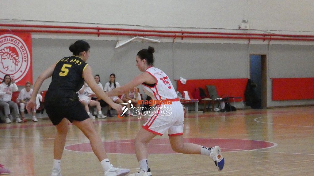 Σε μία αναμέτρηση που δεν διεκδικεί δάφνες ποιότητας και με τον Ολυμπιακό Βόλου να έχει κακά διαστήματα, κάτι που εν μέρει δικαιολογείται ο Άρης κρατούσε ένα μικρό προβάδισμα αρχικά 3-5 πόντων, όμως οι «ερυθρόλευκες» πόνταραν στην άμυνα. Στην επίθεση πάλι ήταν άστοχες, όχι όμως ότι ήταν καλύτερες και οι φιλοξενούμενες.