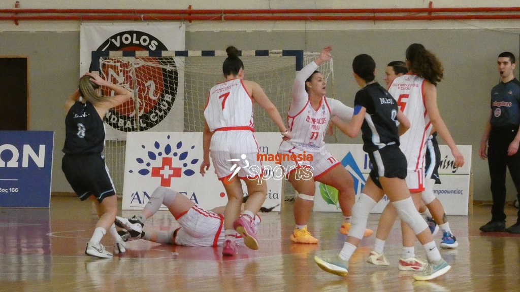 Μπορεί ποιοτικά το παιχνίδι να ήταν εξαιρετικά κακό (έστρωσε κάπως στο τέταρτο δεκάλεπτο), ωστόσο είχε ενδιαφέρον η διακύμανση του σκορ. Ο Ολυμπιακός Βόλου ήταν στο +4 (22-18) δύο λεπτά πριν από το ημίχρονο, αλλά με ένα σερί 0-7 οι φιλοξενούμενες κατόρθωσαν να περάσουν μπροστά 22-25.