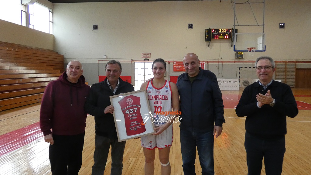 Στο ημίχρονο παράλληλα, ο ΑΣ Ολυμπιακός Βόλου 1937 τίμησε την Ίνγκα Μανουτσαριάν, με την γκαρντ των «ερυθρόλευκων» να έχει αναδειχθεί πρώτη σκόρερ όλων των εποχών σε πρωτάθλημα κανονικής διάρκειας της κατηγορίας, με 437 πόντους. Ιδιαίτερα συγκινημένη η ίδια η παίκτρια, γνώρισε το θερμό χειροκρότημα των συμπαικτριών της και όλων όσοι βρέθηκαν στο κλειστό του ΕΑΚ, στους οποίους συμπεριλαμβανόταν και ο πατέρας της που ήρθε από την Αρμενία καθώς και ο θείος της που διαμένει στη Βουλγαρία.
