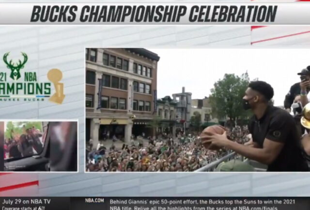 Ο απόλυτος ηγέτης των Μπακς, Γιάννης Αντετοκούνμπο, προπονήθηκε στις… βολές, κατά τη διάρκεια της παρέλασης των πρωταθλητών.