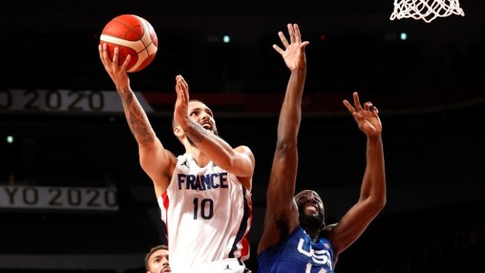 Η εθνική ομάδα της Γαλλίας φαίνεται να έχει βρει το «κουμπί» των ΗΠΑ. Μετά τη νίκη τους στο περυσινό Παγκόσμιο πρωτάθλημα, οι «τρικολόρ» επικράτησαν και τώρα της Αμερικής με 83-76 σε αναμέτρηση για τον Α΄ όμιλο του Ολυμπιακού τουρνουά μπάσκετ των Ανδρών. Κορυφαίος των νικητών ήταν ο Εβαν Φουρνιέ με 28 πόντους ενώ 14 πρόσθεσε ο Ρούντι Γκομπέρ (9 ριμπάουντ) και 13 ο Ντάντο Ντε’Κολό (5 ασίστ, 5 ριμπάουντ). Για τις ΗΠΑ πρώτος σκόρερ αναδείχθηκε ο Τζρου Χόλιντεϊ με 18 πόντους (7 ριμπάουντ και 4 ασίστ) ενώ 12 πόντους και 10 ριμπάουντ είχε ο Μπαμ Αντεμπάγιο.