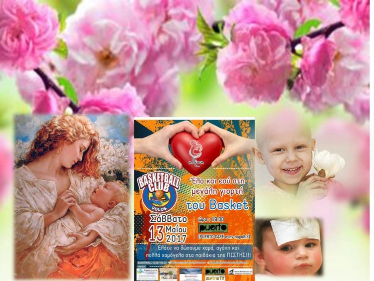 Ανακοίνωση εξέδωσε ο Σύλλογος Πίστη για την εκδήλωση ενίσχυσης του που διοργανώνει το B.C. Volos για 5η χρονιά. Η ανακοίνωση έχει ως εξής: “Ο Σύλλογος Πίστη σε συνεργασία με το BC Volos (Ακαδημία Μπάσκετ -Αφοί Καρακατσούνη) διοργανώνει για 5η φορά τη μεγάλη Γιορτή του Μπάσκετ για ενίσχυση του σκοπού και το έργο του Συλλόγου (όπου δραστηριοποιείται στα τρία Ογκολογικά-Αιματολογικά τμήματα και στη Μεταμόσχευση Μυελού των Οστών του Νοσοκομείου Παίδων “Αγία Σοφία”). Προσβλέπουμε στη βοήθεια σας για να συνεχίσουμε τον αγώνα μας για την αίσια έκβαση της περιπέτειας των παιδιών μας. Σας ευχαριστούμε από καρδιάς”.
