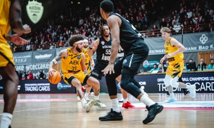 Φοβερή ΑΕΚ στη Γερμανία, που με όπλο την άμυνα της και έχοντας στο πλευρό της περίπου 200 φιλάθλους της Ένωσης, οι οποίοι δημιούργησαν εντυπωσιακή ατμόσφαιρα, νίκησε τη Βίρτσμπουργκ 77-71 για την 3η αγωνιστική του ομίλου της, έκανε το 3/3 και βρίσκεται στην κορυφή με το ενάμισι πόδι στα προημιτελικά του Basketball Champions League.