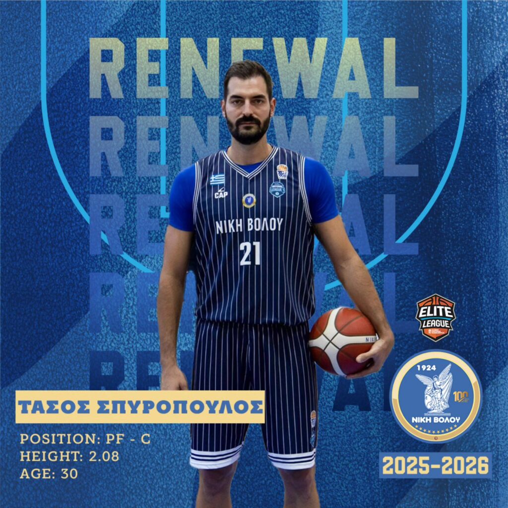 Η Δ.Ε. καλαθοσφαίρισης της Νίκης Βόλου ανακοίνωσε επίσης τη συμφωνία με τον Λαρισαίο αθλητή Αναστάσιο Σπυρόπουλο (2.08, PF-C) για την ερχόμενη σεζόν στην Elite League! Ο 30χρονος αθλητής ήταν ο βασικός πυλώνας της ομάδας κατά την περσινή σεζόν, όντας ο πρώτος της σκόρερ και ο πρώτος της ριμπάουντερ. Ήταν επίσης πρώτος σε χρόνο συμμετοχής, χωρίς να χάσει ούτε ένας ματς. Ολοκλήρωσε την περσινή χρονιά στη National League 1 μετρώντας 461 πόντους με δύο τρίποντα 26 αγώνες, όντας παράλληλα ο πρώτος σκόρερ στην κατηγορία. «Είμαστε πολύ χαρούμενοι που ο Τάσος παραμένει στον οργανισμό της Νίκης Βόλου, καθώς εκτός από φανταστικός αθλητής είναι κι εξαιρετικός χαρακτήρας. Του ευχόμαστε υγεία και καλή αγωνιστική χρονιά», τονίζεται στην ανακοίνωση.