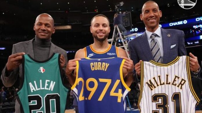 Ιστορία έγραψε στην νίκη του Γκόλντεν Στέιτ επί της Νέας Υόρκης (105-96) ο Στεφ Κάρι, καθώς ξεπέρασε τον Ρέι Άλεν και έγινε ο παίκτης με τα περισσότερα εύστοχα τρίποντα στην Ιστορία της λίγκας. Ο άσος των Ουόριορς χρειαζόταν δύο τρίποντα για να ξεπεράσει τον Άλεν και τα κατάφερε περίπου επτά λεπτά πριν την λήξη της περιόδου στη «Μέκα» του μπάσκετ, το θρυλικό Madison Square Garden.