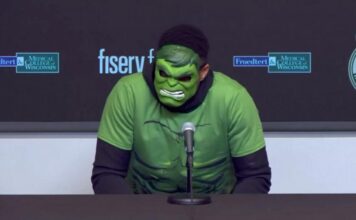 Ντύθηκε Hulk ο Γιάννης Αντετοκούνμπο στη συνέντευξη Τύπου