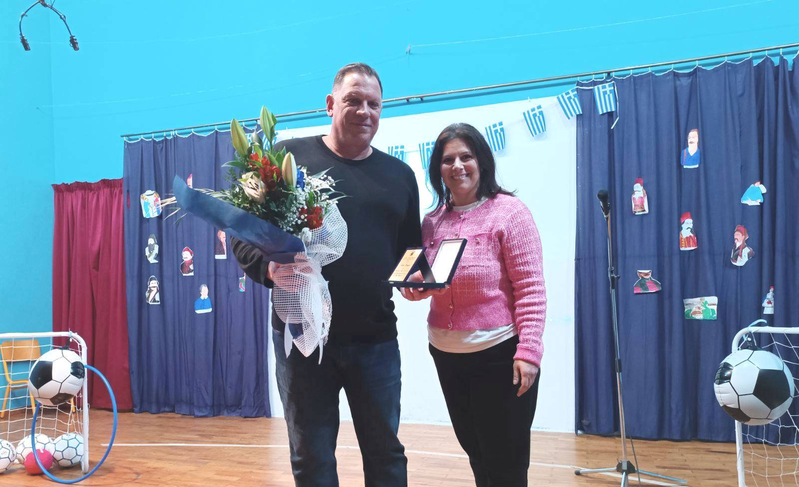 Ο μεγάλος αυτός αθλητής και συντοπίτης μας δέχθηκε την πρόσκληση μας με μεγάλη χαρά, μίλησε στα παιδιά μας για την ευγενή άμιλλα και τις αξίες του αθλητισμού και γέμισε χαρά τα παιδιά μας.