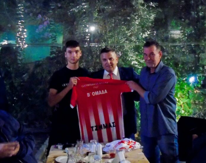 Σε μια όμορφη και ζεστή βραδιά, γεμάτη χαμόγελα και «ερυθρόλευκο» πάθος, οι υπεύθυνοι του Ολυμπιακού Βόλου Β’, Δημήτρης Σιούρας, Δημήτρης Μυλωνάς και Χρήστος Τριανταφύλλου, παρέθεσαν δείπνο στους νεαρούς ποδοσφαιριστές της ομάδας και τον προπονητή τους, τον Βαγγέλη Τάχο, παλιά δόξα του Ολυμπιακού Βόλου, καθώς και στον πρόεδρο του ποδοσφαιρικού τμήματος Σάκη Τζήμα.