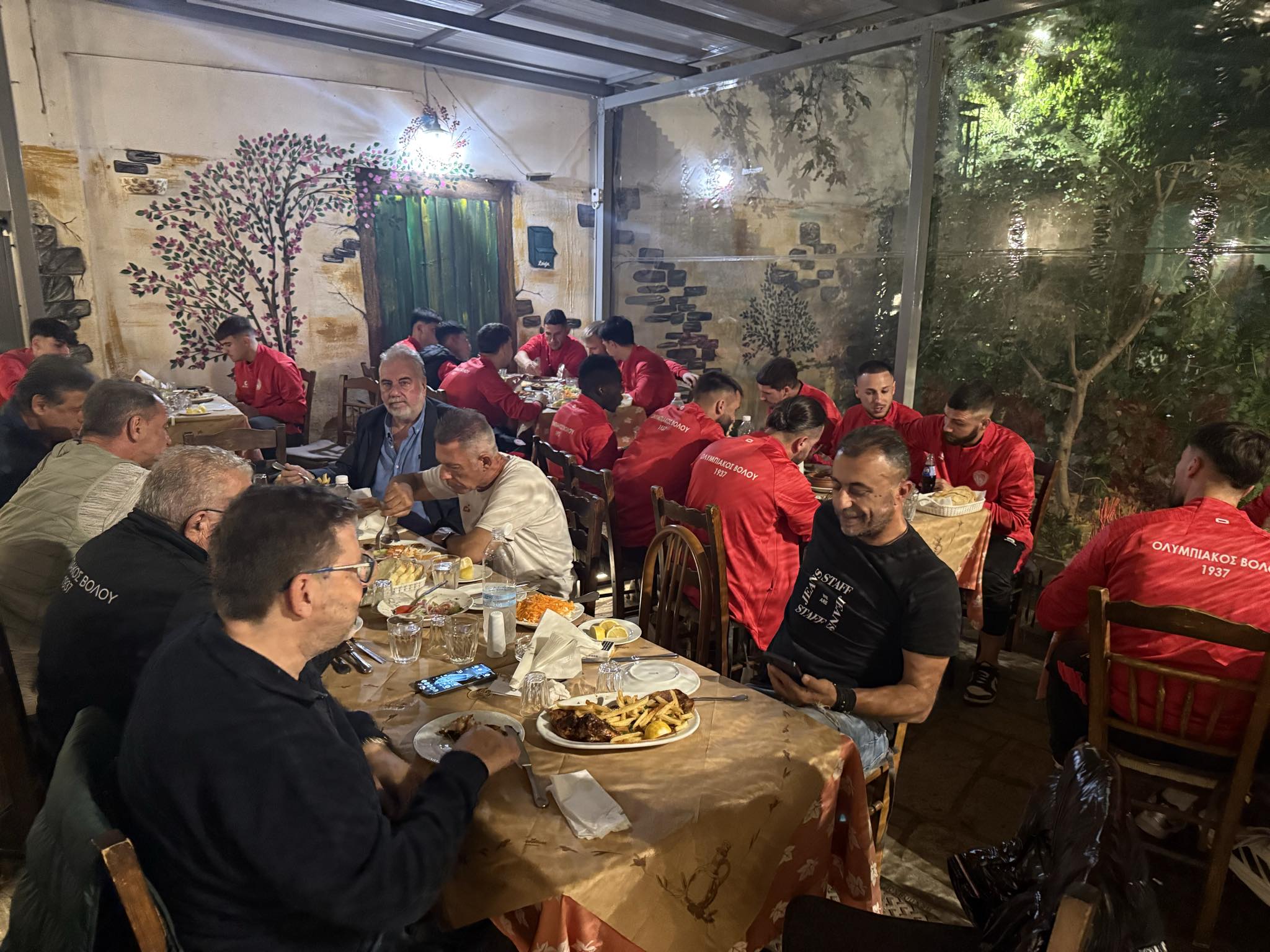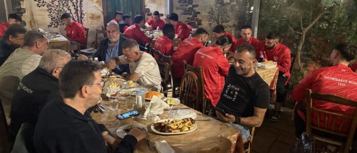 Ο πρόεδρος, εμφανώς συγκινημένος, συνεχάρη τους ποδοσφαιριστές και το τεχνικό τιμ για την ψυχή που έβγαλαν στο γήπεδο. Η βραδιά κύλησε σε εξαιρετικό κλίμα, με χαμόγελα και αίσθημα ικανοποίησης για τη συνέχιση της επιτυχημένης πορείας του Ολυμπιακού Βόλου σε όλους τους θεσμούς, μέσα και έξω από το γήπεδο».