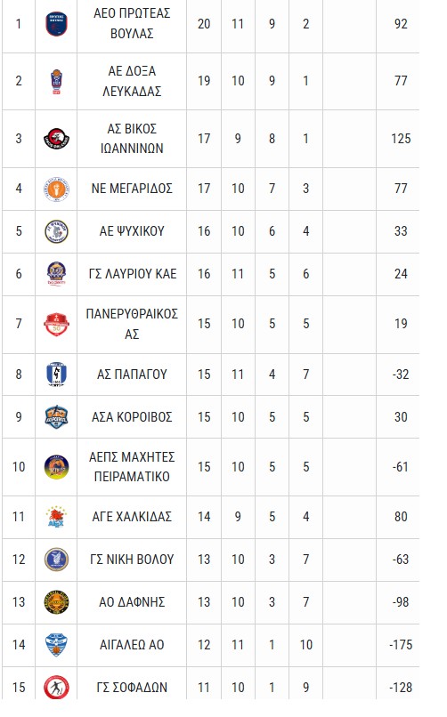 Η βαθμολογία μετά και την αποχώρηση του Α.Ο. Τρίκαλα