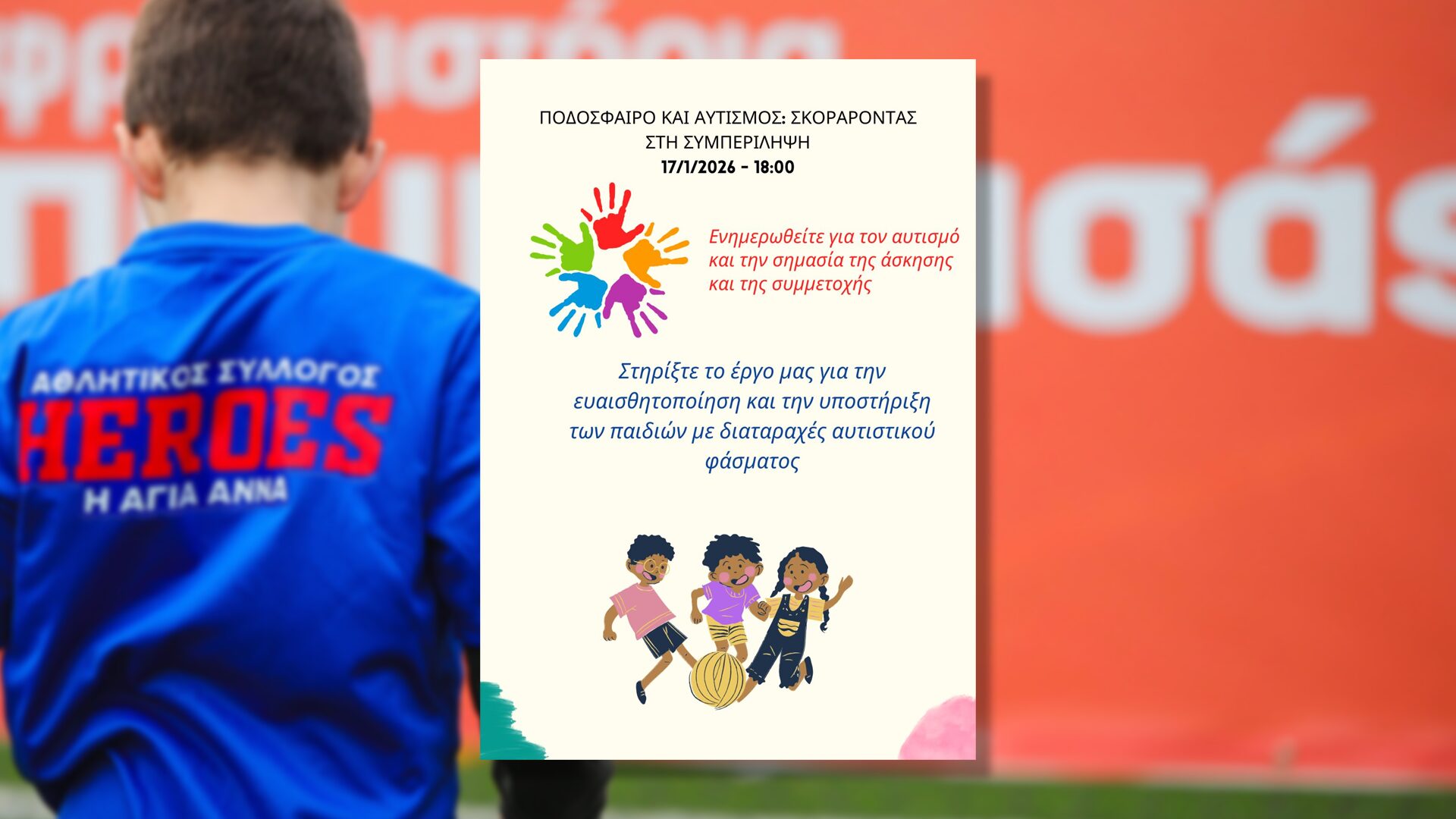 Με γνώμονα την αγάπη για το παιδί και τη δύναμη της συμπερίληψης, σας προσκαλούμε στην ομιλία με τίτλο: «Η σημασία της άσκησης στη ζωή των ατόμων με Διαταραχή Αυτιστικού Φάσματος».