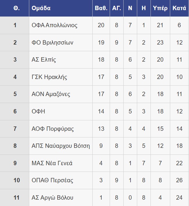 H Αργώ μετά την αναμενόμενη ήττα της με 3-0 σετ από τον Φ.Ο. Βριλησσίων στην Αθήνα σε συνδυασμό με τη νίκη με 3-2 σετ του Περσέα επί της Νέας Γενεάς έμεινε μόνη στην τελευταία θέση της βαθμολογίας της Prelague βόλεϊ Γυναικών έπειτα από την 9η αγωνιστική.