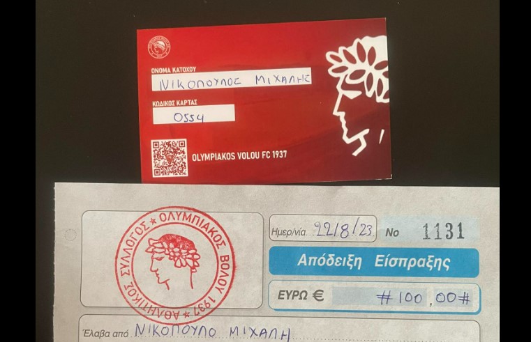 Αναλυτικά: “Θέλουμε να ευχαριστήσουμε τον Μιχάλη Νικόπουλο, υιό του κ. Νικόπουλου και άξιο φίλαθλο του Ολυμπιακού, που όπως λέει και ο ίδιος “έχει σπάσει τα πόδια του για τον Ολυμπιακό Βόλου”.