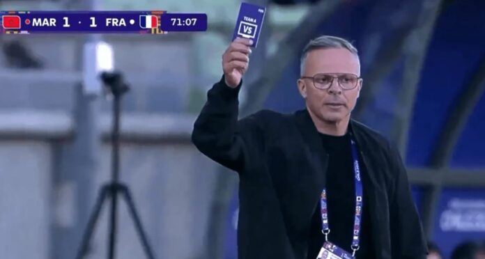Ωστόσο, ο αγώνας έμεινε στην ιστορία για έναν διαφορετικό λόγο και όχι τόσο για την εξέλιξη της αναμέτρησης. Στο 72ο λεπτό της αναμέτρησης, ένας παίκτης των Μαροκινών έπεσε μέσα στην περιοχή της Γαλλίας και ο προπονητής της ομάδας του, Μοχάμεντ Ουάμπι, θεώρησε ότι ο διαιτητής έπρεπε να είχε δώσει πέναλτι.