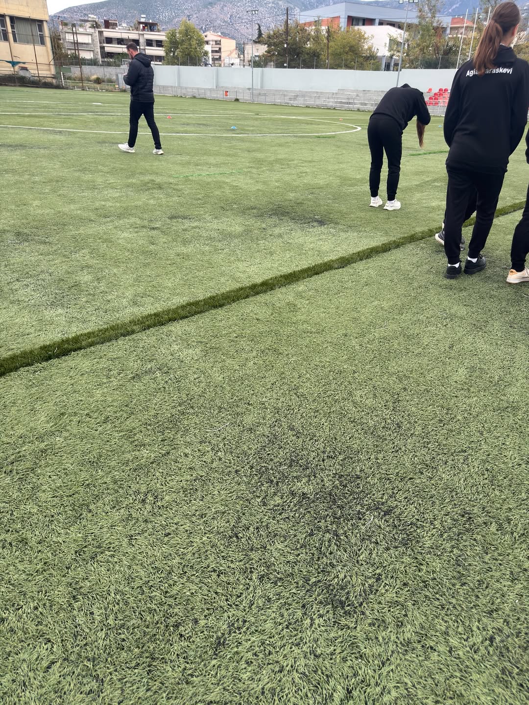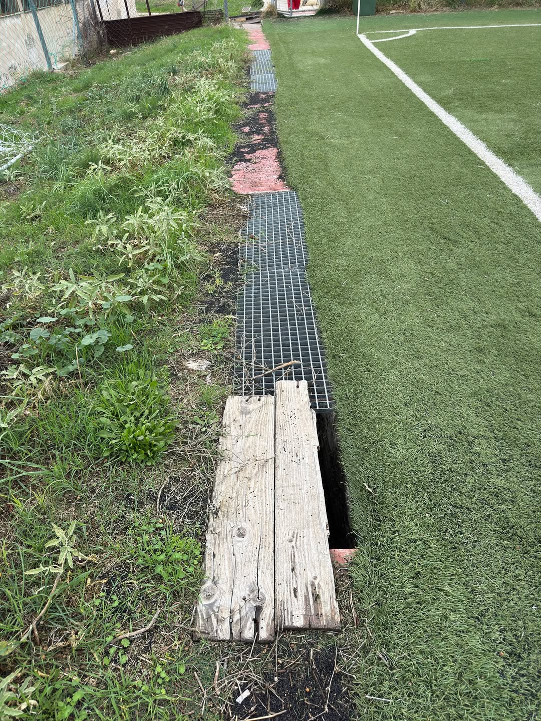 Ένα γήπεδο γεμάτο πρόχειρα μπαλώματα, λακκούβες, κενά στον αγωνιστικό χώρο και αιχμηρά σίδερα που εξείχαν από τις εσοχές της αποχέτευσης.