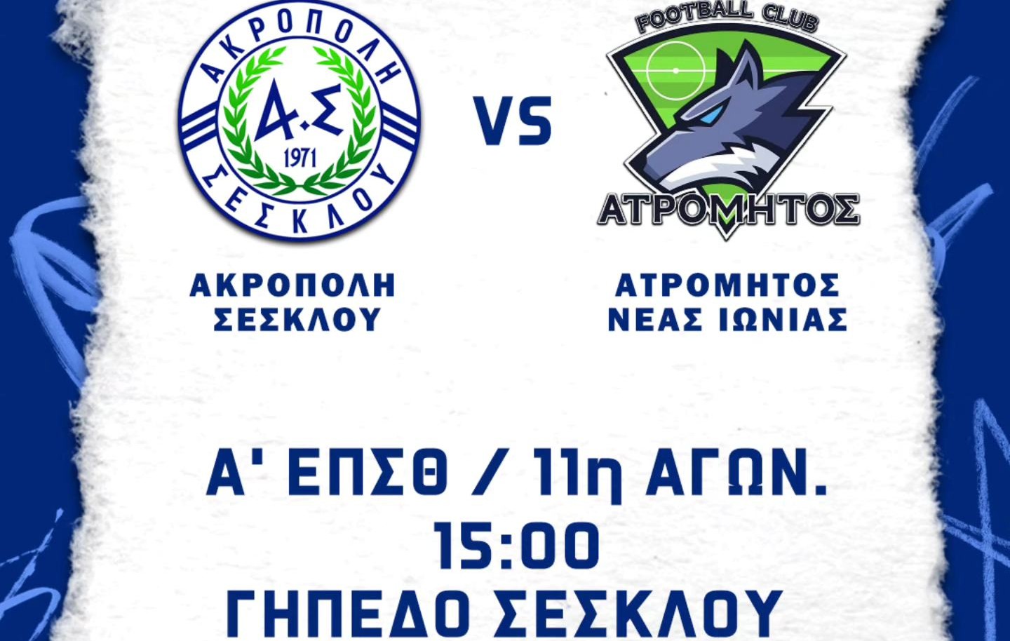 Κάλεσμα στους φίλους της ομάδας για το σημερινό (10/1) παιχνίδι με τον Ατρόμητο απευθεύνει η Ακρόπολη Σέσκλου: “Για την 11η αγωνιστική του πρωταθλήματος της Α’ ΕΠΣΘ, η Ακρόπολη υποδέχεται τον Ατρόμητο Νέας Ιωνίας. Ο αγώνας είναι προγραμματισμένος για τις 15:00. Σας περιμένουμε στο γήπεδο”, αναφέρεται στο σχετικό μήνυμα.