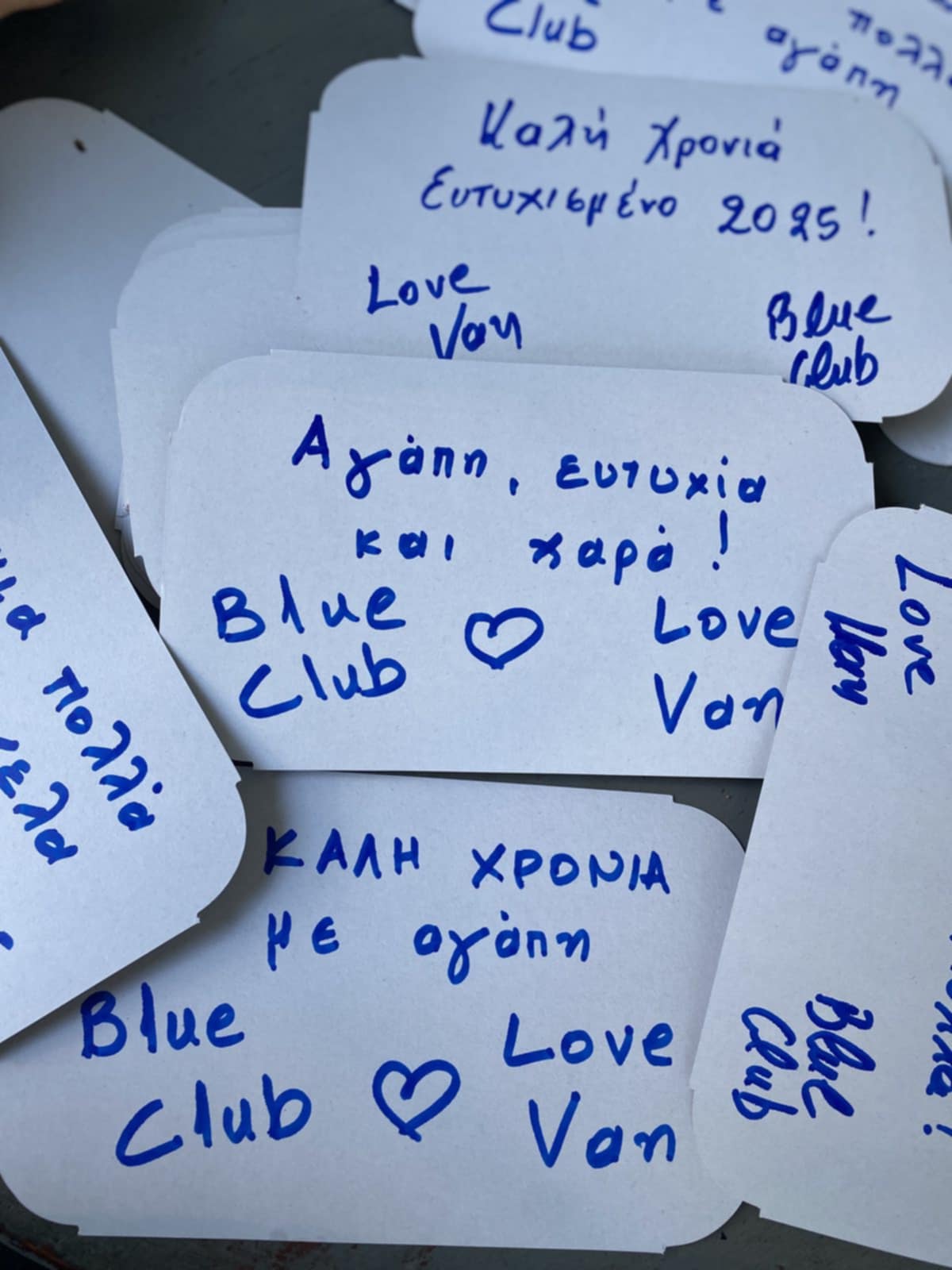 Στο τέλος όλοι όσοι πήραν μέρος στη δράση, έφαγαν όλοι μαζί και ήπιαν ένα κρασί, ανταλλάσσοντας ευχές, καθώς πλέον Blue Club «Π. Ντοκούζης» και Love Van είναι μια οικογένεια.