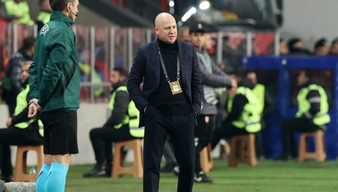 «Θέλω να δώσω πάρα πολλά συγχαρητήρια στους παίκτες μου, διότι έχουν μία σειρά 11 αγώνων που έχουμε νίκες και μία ισοπαλία. Περάσαμε μία δύσκολη σειρά αγώνων. Παίξαμε εκτός έδρας κόντρα σε Φιορεντίνα, Παναθηναϊκό και Σάμσουνσπορ. Ολοι αυτοί οι αγώνες ήταν επιτυχημένοι. Είχαμε και έξι-επτά απουσίες συνολικά. Επέστρεψε ο Ελίασον και καταφέραμε απόψε να του δώσουμε κάποια λεπτά. Είναι πάρα πολύ σημαντική αυτή η νίκη για πολλούς λόγους. Είχαμε ως στόχο να περάσουμε στους ομίλους. Επετεύχθη αυτός ο στόχος από τον δύσκολο δρόμο. Με τρεις προκρίσεις. Επόμενος στόχος ήταν να πάμε στην επόμενη φάση. Επιτυγχάνεται και αυτός ο στόχος. Τώρα πάμε στον επόμενο στόχο μας. Αυτό θα εξαρτηθεί και τι θα γίνει στο ματς με την Κραϊόβα. Στρέφουμε όμως το μυαλό μας στο ματς στο Αγρίνιο και μετά στην Κραϊόβα. Η Σάμσουνσπορ είναι πολλή δυνατή ομάδα. Με καλά χαρακτηριστικά. Παίξαμε επίσης και ένα δύσκολο αγωνιστικό χώρο».
