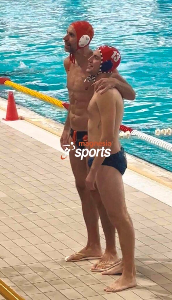 Το σημερινό παιχνίδι πόλο στο κολυμβητήριο “Αντώνης Πεπανός” είχε και μία ιδιαιτερότητα, αφού βρέθηκαν σε διαφορετικά στρατόπεδα δύο συγγενείς. Ο λόγος για τον πολύπειρο τερματοφύλακα του ΟΠΑΘΑ Βαλεντίνο Νάσιο και τον ανιψιό του Κωνσταντίνο Νάσιο, που επίσης είναι τερματοφύλακας στην ομάδα του Βόλου. Ασφαλώς πιο χαρούμενος έφυγε από το κολυμβητήριο ο δεύτερος μια και η ομάδα του πήρε τη νίκη και τους τρεις βαθμούς. Πάντως, ο θείος δείχνει να έχει πιο… γυμνασμένο κορμί από τον ανιψιό παρά τα 15 χρόνια διαφοράς που τους χωρίζουν, με τους δύο να χαμογελούν στον φωτογραφικό φακό.