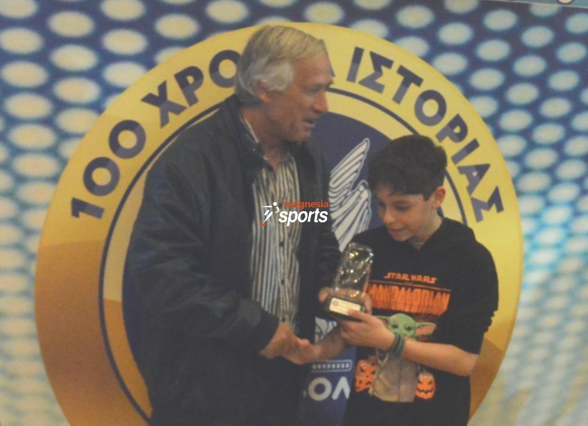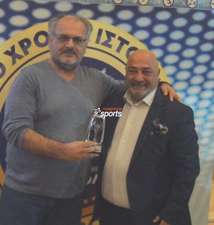 Ο Στέλιος Κολόζος από τη μεριά της Ερασιτεχνικής βράβευσε τον Βασίλη Βενέτη, αντιπρόεδρο της ΠΑΕ