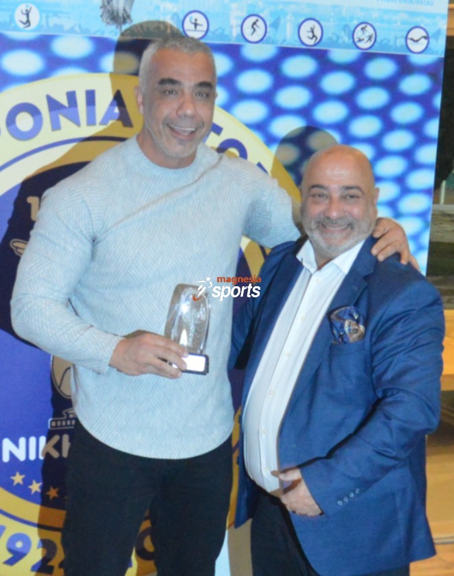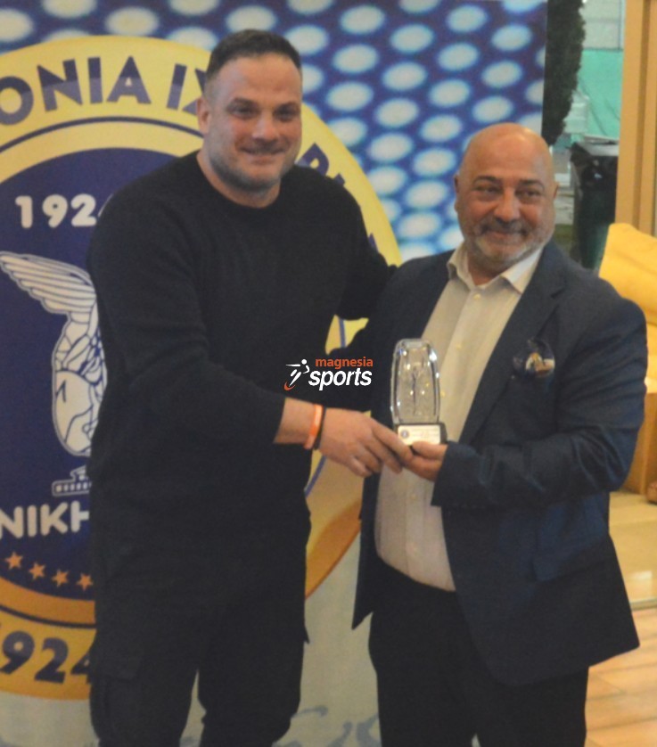 Ο Πέτρος Παρασκευόπουλος στο μέσον τίμησε τον πρώην πρόεδρο της Ερασιτεχνικής Νίκης, Κώστα Μανιατάκη