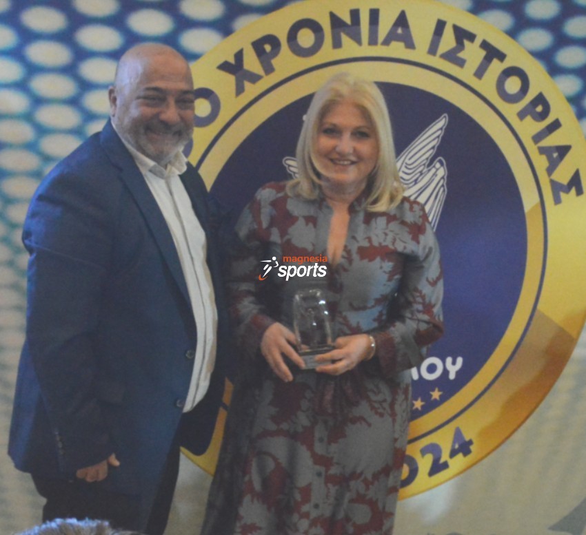 Ο πρόεδρος της Ερασιτεχνικής Νίκης, Ιορδάνης Χατζηεφραιμίδης, με τη Σίσσυ Μαυροπούλου