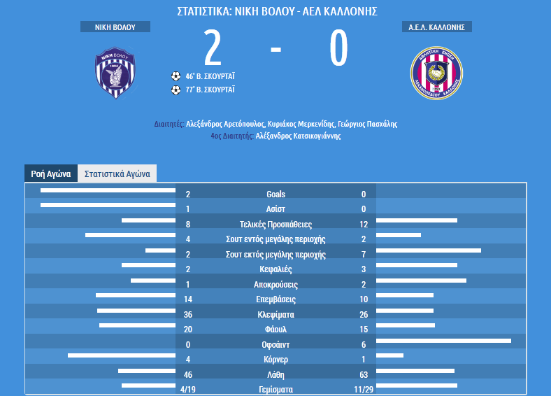 H αγωνιστική βελτίωση της Νίκης είχε φανεί από το προηγούμενο παιχνίδι με τον Αστέρα κι επιβεβαιώθηκε χθες στο Πανθεσσαλικό. Με 8 τελικές προσπάθειες οι “κυανόλευκοι” και τέσσερα σουτ εντός μεγάλης περιοχής, είχαν λιγότερα λάθη απ’ ότι η Καλλονή και περισσότερα κλεψίματα. Αναλυτικά τα στατιστικά της αναμέτρησης για την 13η αγωνιστική: