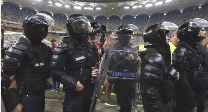 Αυτό το ματς δεν «μύριζε» μόνο μπαρούτι, αλλά πήρε τελικά και φωτιά. Διακοπή είχαμε στην αναμέτρηση της Ρουμανίας με το Κόσοβο για τα προκριματικά του Euro 2024, με τον διαιτητή να στέλνει τις δύο ομάδες στα αποδυτήρια για πανό και συνθήματα κατά των φιλοξενούμενων!
