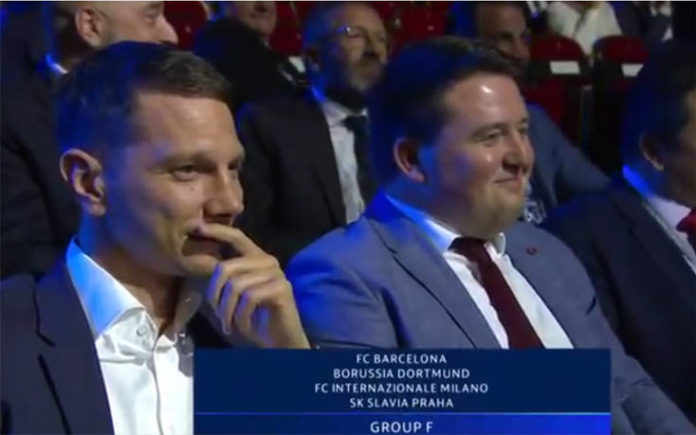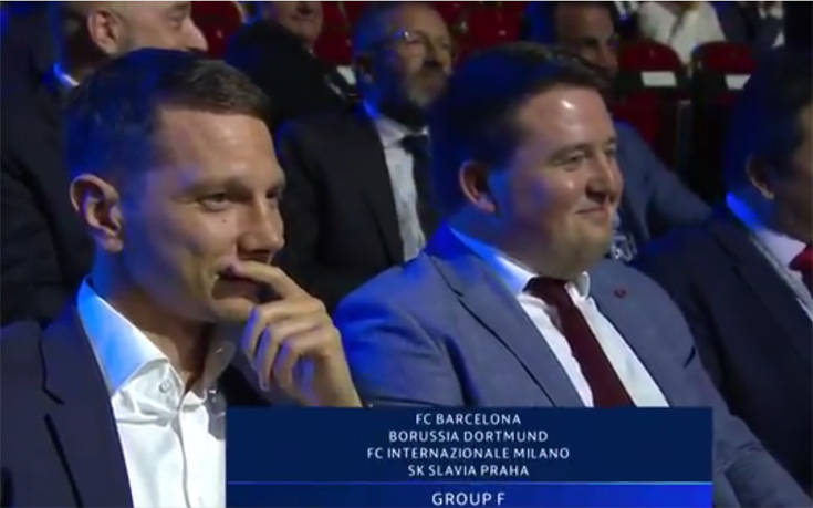 The reaction of the Slavia Prague delegates when drawn in a group with Barcelona, Dortmund and Inter Milan…