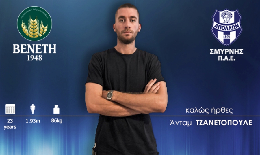 Η ανακοίνωση: «Η ΠΑΕ Απόλλων Σμύρνης ανακοινώνει την απόκτηση του ποδοσφαιριστή Άνταμ Τζανετόπουλου. Γεννημένος στις 10 Φεβρουαρίου 1995 αγωνίζεται ως κεντρικός αμυντικός. Ο διεθνής ποδοσφαιριστής έχει αγωνιστεί σε Ηρακλή και ΑΕΚ, από την οποία έμεινε ελεύθερος. Υπέγραψε τριετές συμβόλαιο συνεργασίας».