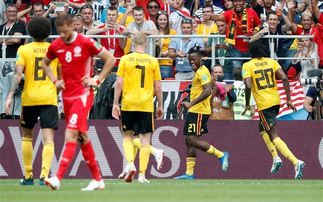 Το Βέλγιο διέλυσε με 5-2 την Τυνησία στο στάδιο «Σπαρτάκ» της Μόσχας, για τη 2η αγωνιστική στον 7ο όμιλο και ουσιαστικά προκρίθηκε στους «16» του Παγκοσμίου Κυπέλλου, ενώ οι Τυνήσιοι, με δύο ήττες, ελπίζουν πια μόνο σε συνδυασμό αποτελεσμάτων.