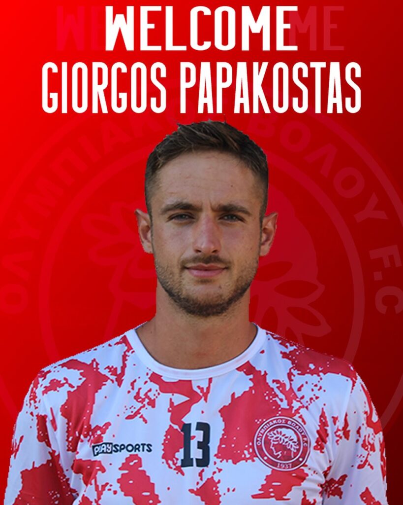 Αναλυτικά: «Καλωσορίζουμε τον Γιώργο Παπακώστα στον Ολυμπιακό Βόλου. Ο Βολιώτης κεντρικός αμυντικός είναι γνώριμος στον κόσμο μας, καθώς έχει ξαναφορέσει τη φανέλα της ομάδας μας τις σεζόν 20-21 και 21-22. Έχει αγωνιστεί επίσης στην Αγία Παρασκευή, από όπου και ξεκίνησε την ποδοσφαιρική του καριέρα, αλλά και στους Ρήγα Φεραίο, Γ.Σ. Αλμυρού και Α.Ο. Τρικάλων.