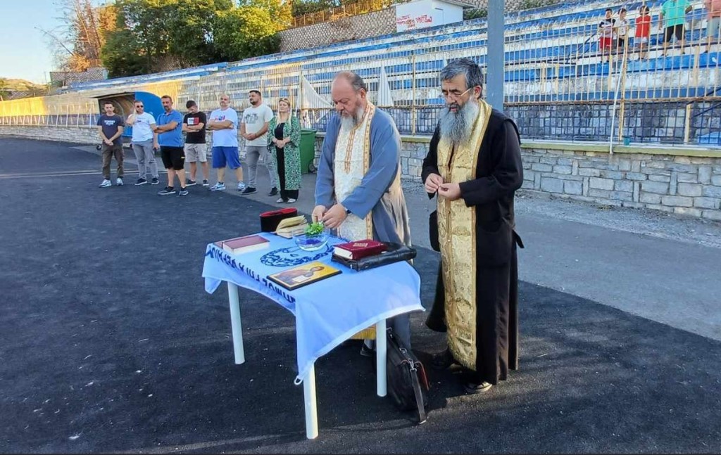 Ο πατήρ Θεοφάνης και ο πατήρ Αθανάσιος, αφού ευλόγησαν τους αθλητές, ευχήθηκαν σε όλους καλή αγωνιστική χρονιά με υγεία και πολλές επιτυχίες.