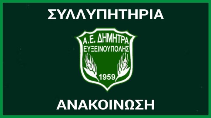 Η ανακοίνωση της Δήμητρας Ευξεινούπολης αναφέρει: «Σαν κεραυνός εν αιθρία έπεσε στην περιοχή μας, το θλιβερό άγγελμα του θανάτου του Χρήστου Δεληζήση, πατέρα του προέδρου της ομάδας μας.