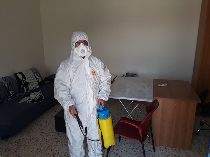 Η απολύμανση πραγματοποιήθηκε από εξειδικευμένο συνεργείο παρουσία του φροντιστή της ομάδας μας, ο οποίος υπέδειξε τους χώρους.