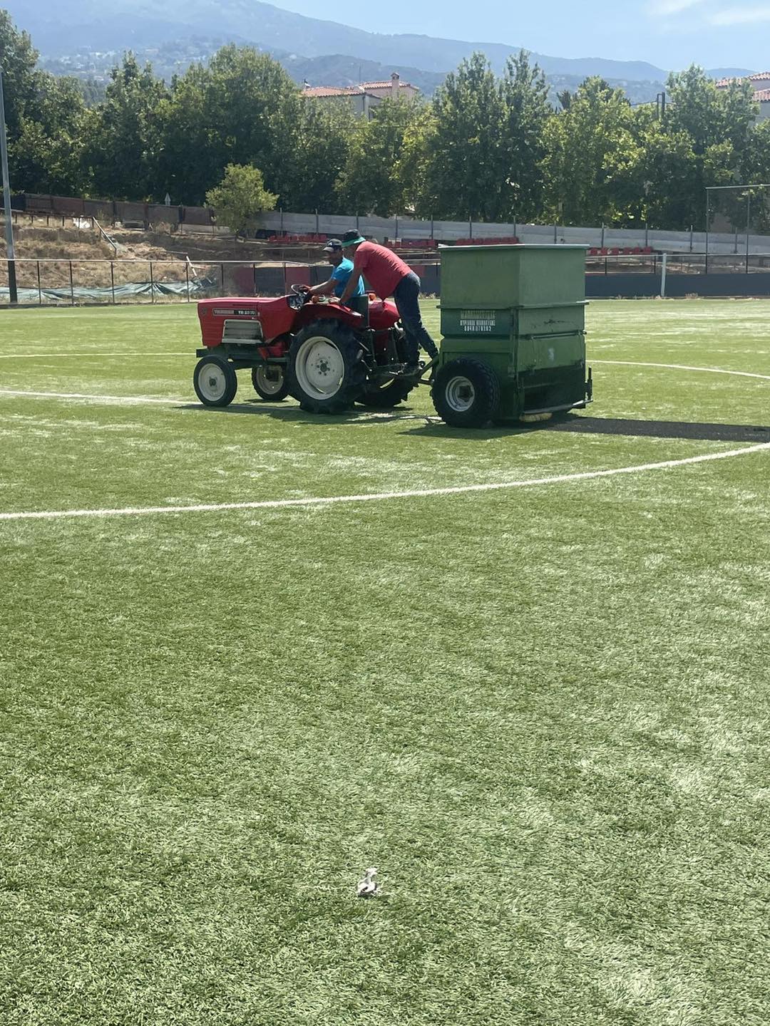 Πιο συγκεκριμένα, προχώρησε σε συντήρηση του αγωνιστικού χώρου με καουτσούκ και στη συνέχεια σε περιποίηση του τάπητα.