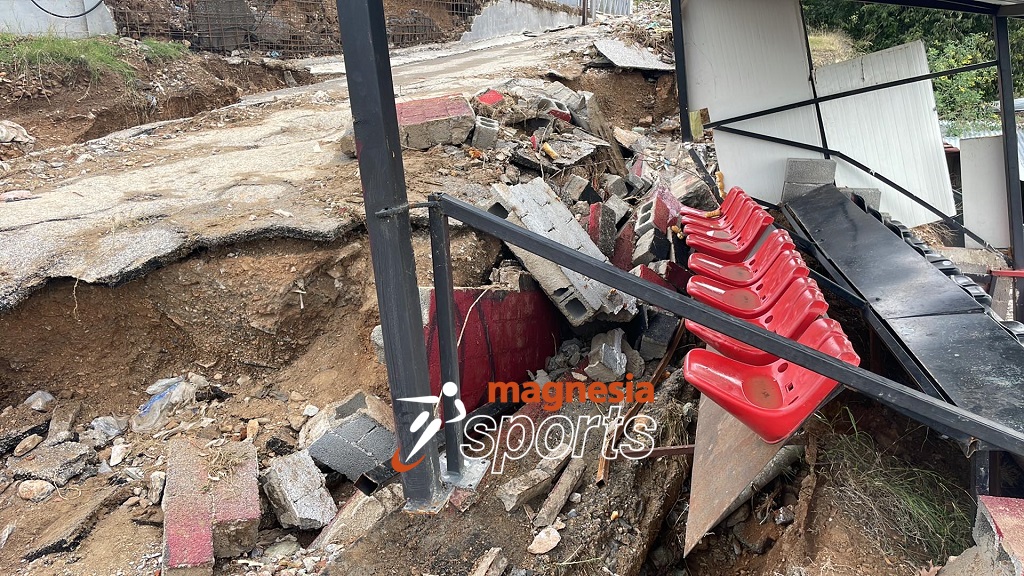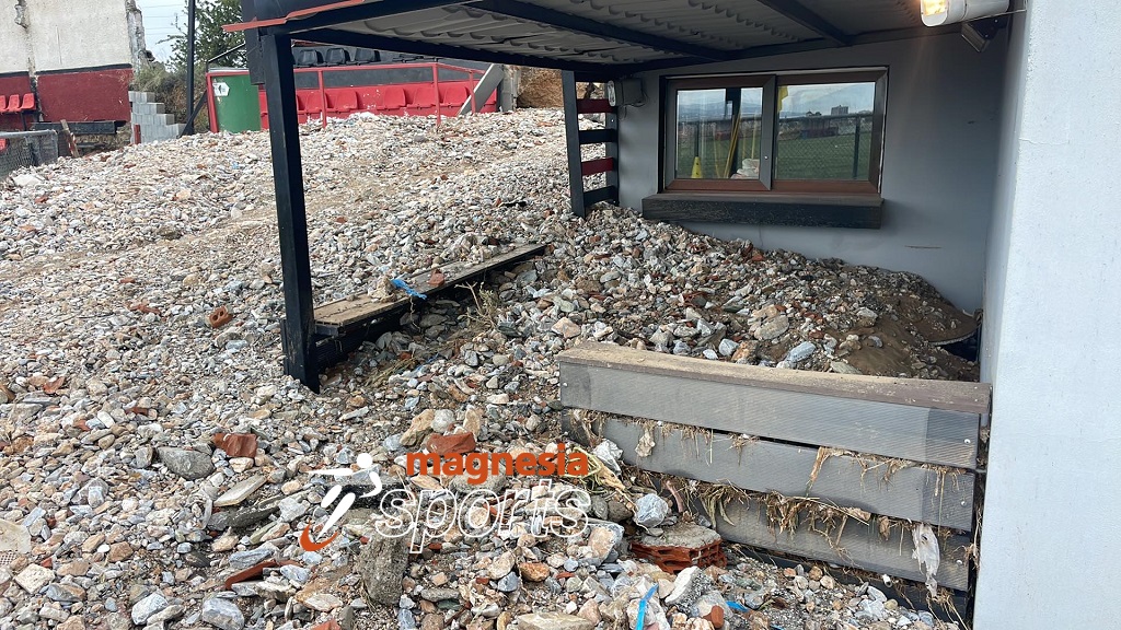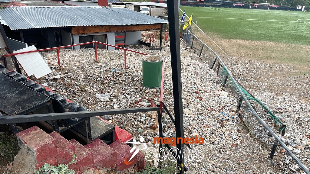 Από εκεί και πέρα, σημειώνει ότι ζημιές έχει υποστεί και η περίφραξη, ενώ με το χώμα και τις πέτρες στο τεχνητό χλοοτάπητα του αγωνιστικού χώρου, δεν αποκλείει να έχουν προκληθεί ζημιές και σ’ αυτόν, την εγκατάσταση του οποίου είχε χρηματοδοτήσει η Περιφέρεια Θεσσαλίας πριν λίγα χρόνια.