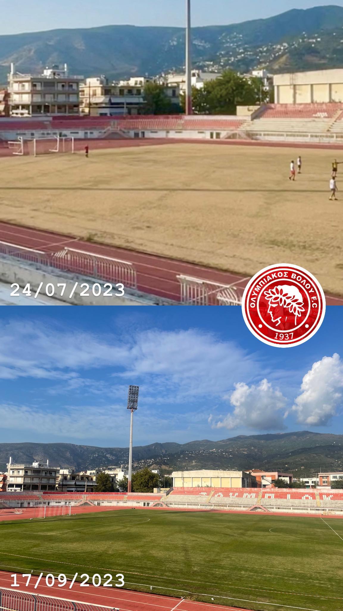 Ανάρτηση σχετικά με την κατάσταση στην οποία βρίσκεται ο χλοοτάπητας του ΕΑΚ έκανε το ποδοσφαιρικό τμήμα του Ολυμπιακού Βόλου, σημειώνοντας από τη μία ότι στις 17 Σεπτεμβρίου το γήπεδο ήταν αυτό που έπρεπε, αλλά από την άλλη ότι οι τεχνικοί σύμβουλοι είχαν ενημερώσει ότι θα χρειαστεί τον Σεπτέμβριο 20-25 ημέρες με επισπορά, για να αντέξει και τον χειμώνα.
