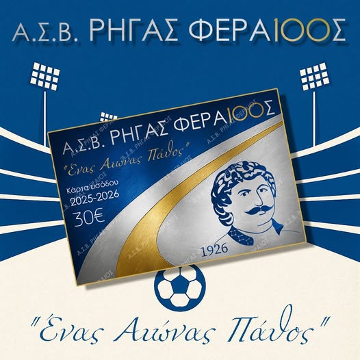 Ο Ρήγας Φεραίος έθεσε σε κυκλοφορία τα συλλεκτικά εισιτήρια διαρκείας του, καθώς ο σύλλογος του Βελεστίνου συμπληρώνει κατά τη διάρκεια της νέας σεζόν 100 χρόνια ζωής, εφόσον ιδρύθηκε το 1926.
