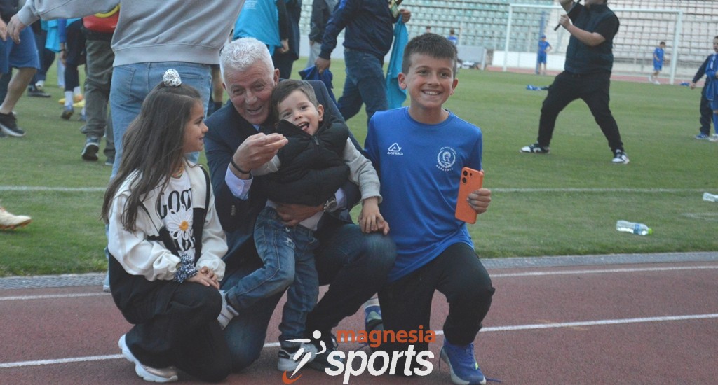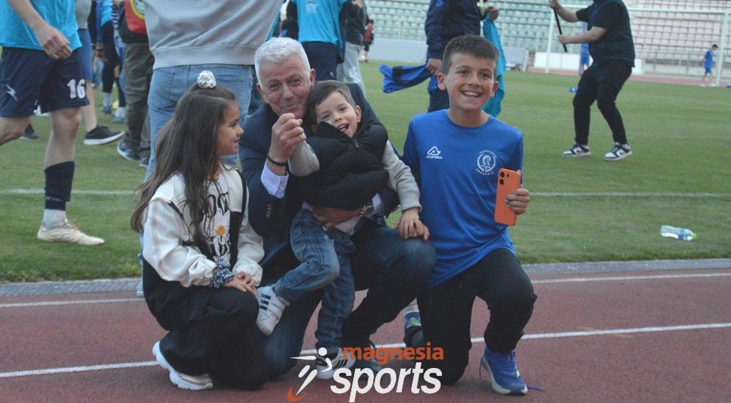Ο Λάκης Μπακάλης, ο προπονητής του Ρήγα Φεραίου, κατέκτησε το Κύπελλο ΕΠΣΘ για έκτη φορά σε πάγκο ομάδας, ενώ το είχε κατακτήσει και μία ως ποδοσφαιριστής. Την ξεχωριστή αυτή στιγμή θέλησε να τη μοιραστεί ως ευτυχισμένος παππούς κυρίως με τα τρία εγγόνια του (Χρυσή, Σπύρος, Αποστόλης), δείχνοντας και τη μεγάλη αδυναμία στον μικρότερο εγγονό του, Αποστόλη, που έχει πάρει και όνομά του.