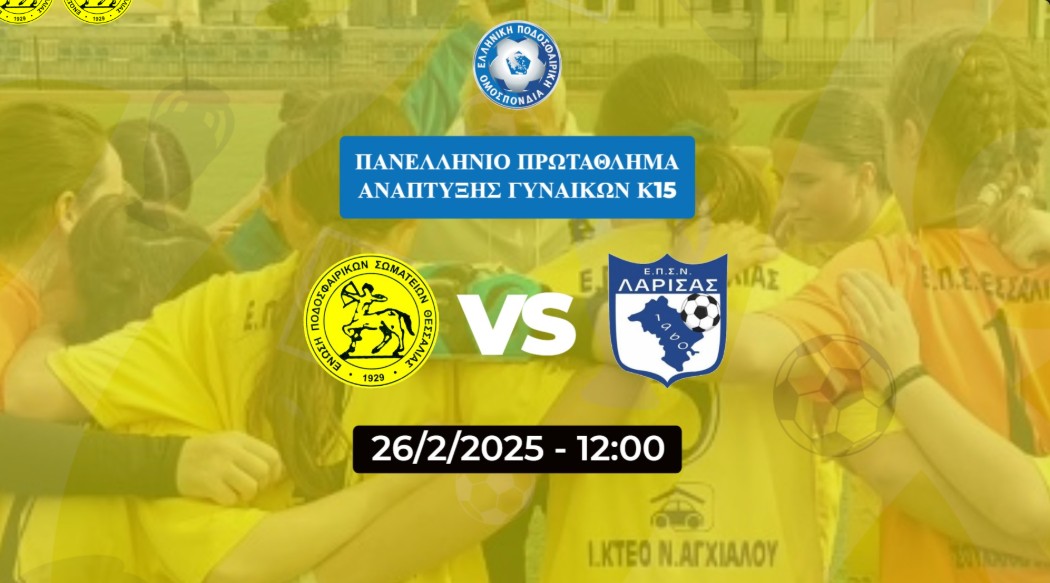 Αύριο Τετάρτη 26/2 η Μικτή ομάδα της ΕΠΣ Θεσσαλίας Κ15 κάνει πρεμιέρα στο Πανελλήνιο Πρωτάθλημα Ανάπτυξης Γυναικών.