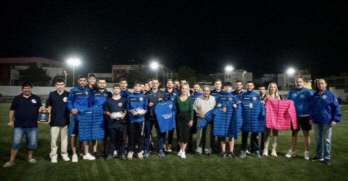 Παράλληλα σε συνεργασία με την ΕΚΠΟΛ και τον πρόεδρο της, Θεματικό Αντιπεριφερειάρχη Εμπορίου Γεώργιο Κίτσιο παρέδωσε αθλητικό εξοπλισμό, μπάλες και ρουχισμό ενόψει των φετινών αγωνιστικών υποχρεώσεων της ομάδας. Οι διοικούντες, ο προπονητής, Παναγιώτης Κουρούπης και οι αθλητές του Άνθιμου Γαζή ευχαρίστησαν θερμά την Αντιπεριφερρειάχρη για την άμεση ανταπόκριση στο αίτημά το συλλόγου και την δωρεά του εξοπλισμού.