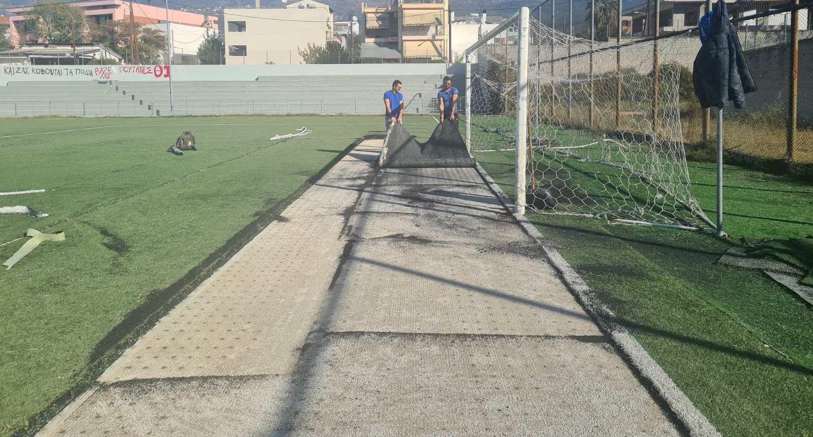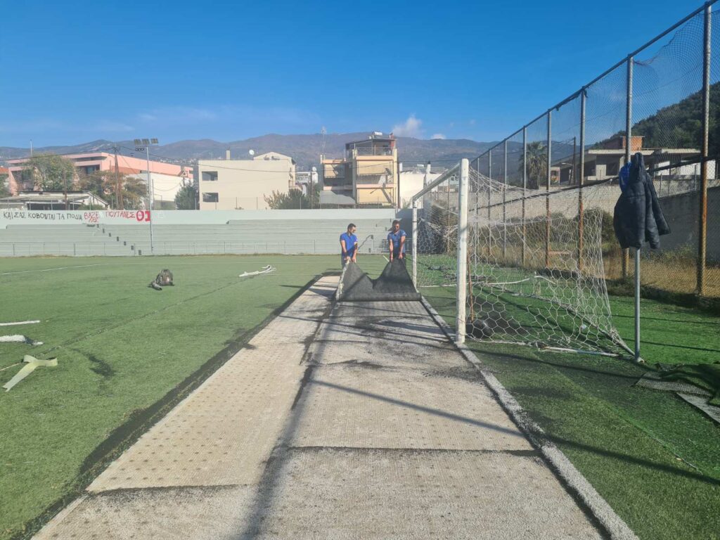Εργασίες ανακαίνισης και μεγάλης κλίμακας συντήρηση στο Βοηθητικό γήπεδο, μετά από αυτοψία και εντολή του Δημάρχου μας κ. Αχιλλέα Μπέου, αφού στο εν λόγω γήπεδο αθλούνται καθημερινά εκατοντάδες παιδιά και αρκετοί αγώνες διεξάγονται εκεί τα Σαββατοκύριακα, καθώς το έχουν δηλώσει ως έδρα έξι ομάδες.