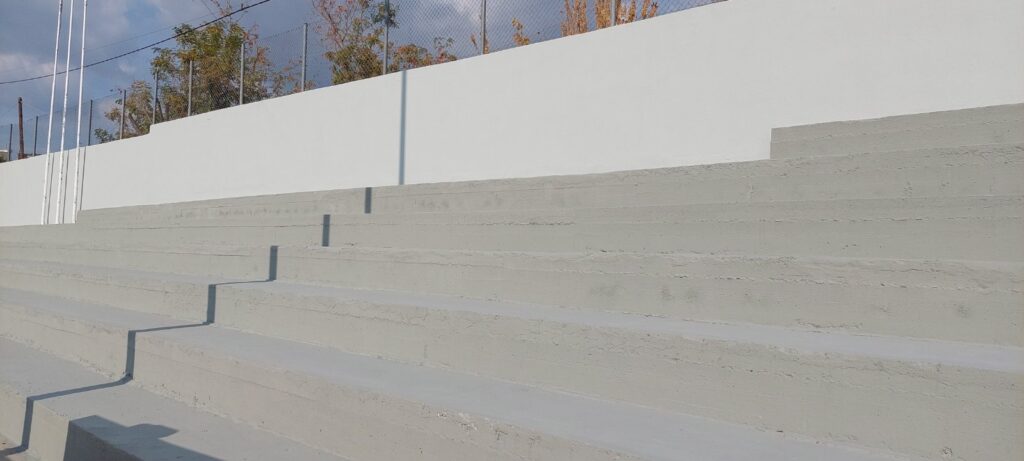 Άμεσα λοιπόν, αποξηλώθηκαν τα φθαρμένα πλαστικά καθίσματα και τοποθετήθηκαν νέα, έγινε επίστρωση με ειδικό υλικό και βαφή των κερκίδων, έγινε αλλαγή όλης της περίφραξης και τοποθετήθηκε νέα με κουπαστή για την ασφάλεια των αθλούμενων αλλά και των φιλάθλων, τοποθετήθηκαν καινούριοι πάγκοι αθλητών και διαιτητών, ενώ την περασμένη Δευτέρα ξεκίνησε και η συντήρηση και αλλαγή σε αρκετά σημεία του φθαρμένου πλαστικού χλοοτάπητα.