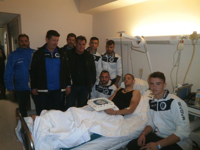Όλοι μαζί μετά το τέλος του αγώνα κυπέλλου την Τετάρτη, τον επισκέφθηκαν με σκοπό να του εκφράσουν την αγάπη τους, τη συμπαράστασή τους, ταχεία ανάρρωση και γρήγορη επιστροφή στους αγωνιστικούς χώρους. Του προσέφεραν μία τούρτα με το σήμα της ομάδας του, του Ηρακλή, και ένα μπλουζάκι με σύνθημα «Σπύρο ψυχάρα για πάντα Ηρακλάρα».