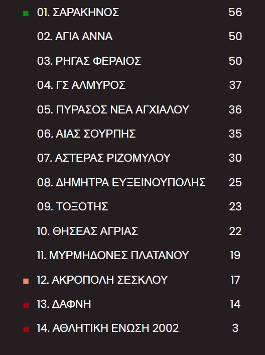 Στη μάχη της παραμονής χαμένη είναι η Δάφνη, που έχασε φυσιολογικά από την Αγία Άννα στο Βασδέκειο με 1-3, και κερδισμένος τόσο ο Θησέας, που έφυγε με το διπλό από τον Ριζόμυλο με 1-2 επί του Αστέρα με ανατροπή, όσο και η Δήμητρα με το υπέρ της 1-0 επί του Γ.Σ. Αλμυρού χάρη σε πέναλτι που δόθηκε για χέρι του Δίντση και εκτέλεσε εύστοχα ο Μπιρμπίλης στο 73’.