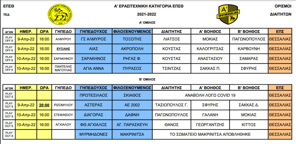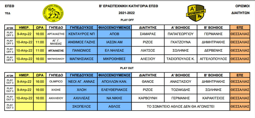 Αναλυτικά, οι ορισμοί σε play off και play out σε Α’ και Β’ ΕΠΣΘ, έχουν ως εξής: