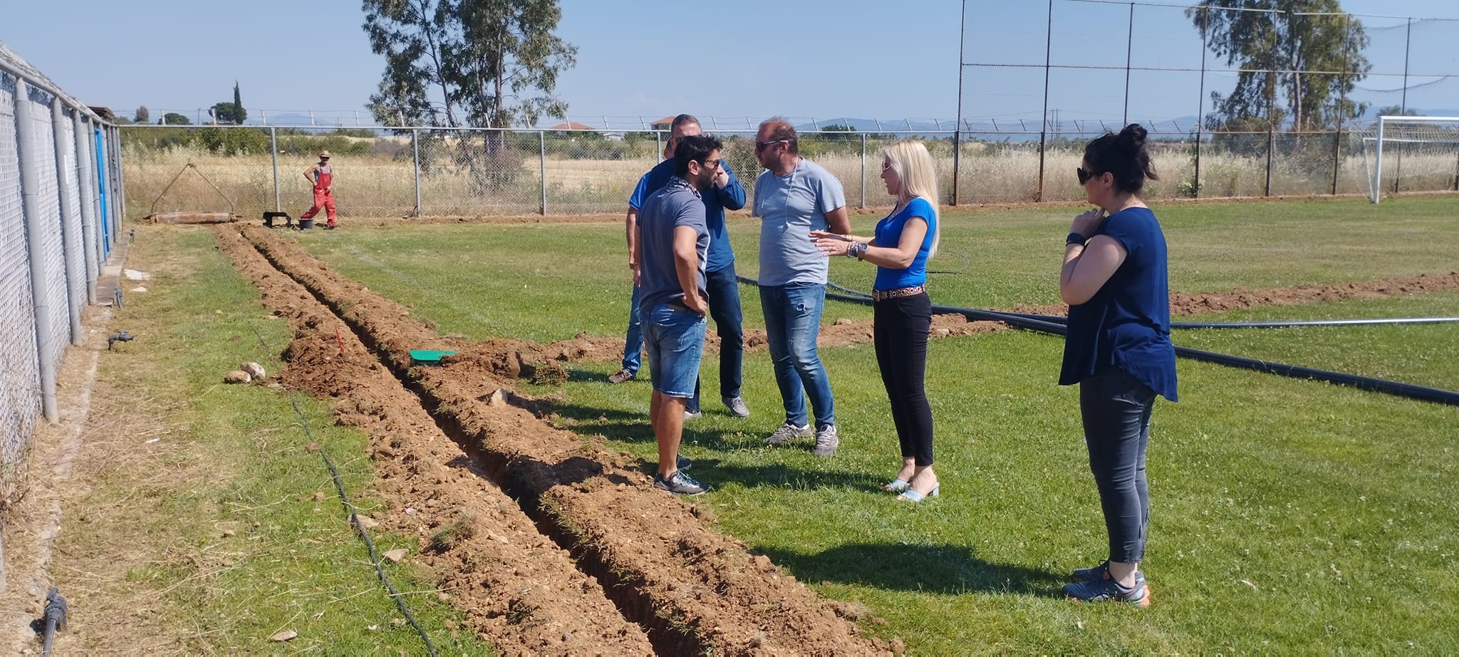 «Εργασίες αποκατάστασης (χλοοτάπητας, αρδευτικό, κερκίδες) στο γήπεδο της Σούρπης και στο γήπεδο Πλατάνου… Έπεται το γήπεδο Ευξεινούπολης» αναφέρει η κα Κολυνδρίνη, που συζήτησε με τον εργολάβο Νίκο Παπακωνσταντίνου για την πορεία των εργασιών και για το χρονικό διάστημα που προβλέπεται να ολοκληρωθούν οι εργασίες.